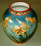 My collection is from the hand painted period - vases, lamps, plates and mugs; a mix of what I personally collected during my years at SBCD, pieces I bought back from wholesale accounts, those I commissioned and many destined for craft galleries and exhibitions. In 1989 Hurricane Hugo destroyed my truck and my ability to distribute the inventory. They've been stored in the attic since then.